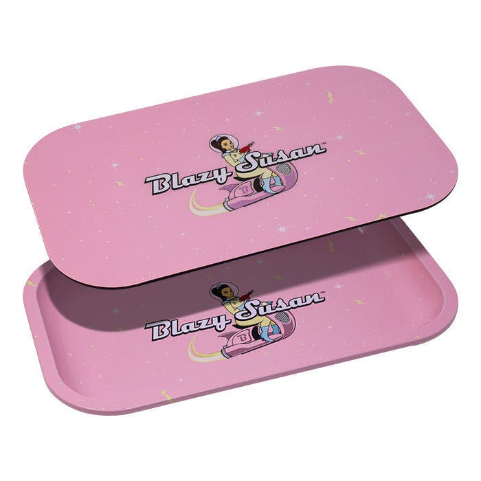 Blazy Susan Pink Medium Rolling Tray w/ Lid