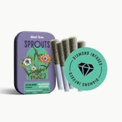 Kind Tree Platinum Peaches is an indica-dominant, diamond-infused pre-roll 5-pack (1.75g total) featuring a cross of Platinum Kush Mints and Peach Pie. It offers a flavor profile of juicy peach, refreshing mint, and cream. These high-potency, resin-infused pre-rolls are popular in NJ dispensaries for relaxing, indica effects