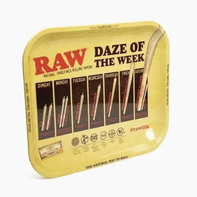 RAW Authentic Daze Rolling Tray Large are thick metal trays with a smooth coating on top. The tray is made from a high-quality metal that will not bend, warp or become flexible. This large rolling tray has curved edges to ensure nothing gets stuck anywhere. These RAW authentic trays serve their purpose perfectly. Keep your desk, floor, and house clean by storing all of your smoking goods and residue in this tray. The Raw tray is smooth to the touch and easy to wipe down with a cloth if needed.