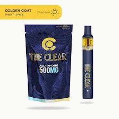 Golden Goat emulates the popular cannabis strain. Known for sativa-dominance, along with mild sweet, spicy, and sour notes, Golden Goat is a full-bodied, tropical experience. Completely free of filler agents, and with a starting potency of well over 85% cannabinoids, The Clearâ„¢ Original cannabis oil is perfect for the moderate to seasoned cannabis enthusiast. Our ultra-premium THC distillate comes in 500mg All-in-one vape pens, and 500mg (.5g), 1000mg (1g), and 2000mg (2g) cartridges. Blended with our signature botanical terpene profiles to create one of a kind flavors, discover the pinnacle of cannabis oil with The CLEAR. Enjoy pure, ultra-premium THC distillate that has been carefully refined to deliver the perfect flavor and experience.