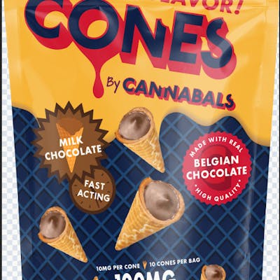 10 mg per cone | 100 mg per bag Crunchy, creamy, and oh-so-dreamy. Cannabals Milk Chocolate Cones bring the ultimate treat in every bite—crispy sugar cones packed with smooth, decadent Belgian milk chocolate infused with 10 mg of cannabis. Rich, satisfying, and dangerously snackable. Each bag comes with 10 cones, but let’s be real—stopping at just one is the real challenge.
