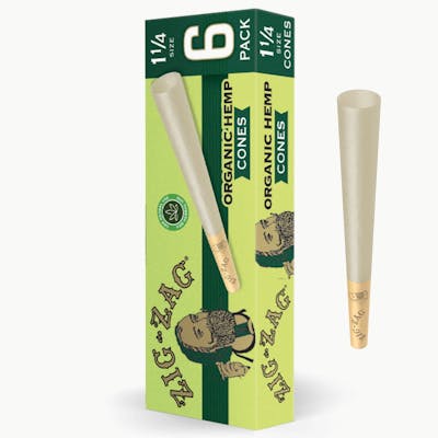 Zig-Zag Organic Hemp Papers are unbleached ultra thin papers made from 100% renewable non-gmo hemp fibers sourced from organic farms from Champagne, France. All Zig-Zag papers have a thin glue line to provide a perfect seal – every time. Derived from the sap of the African acacia tree, the natural properties of gum Arabic provide a consistent seal without impacting the taste of your smoke. Substrate: Made from Unbleached Organic Hemp Fibers Paper Size: 1 1/4 (78mm) Thickness: Ultra Thin Capacity: ~0.5g Pack Size: 6 cones/box