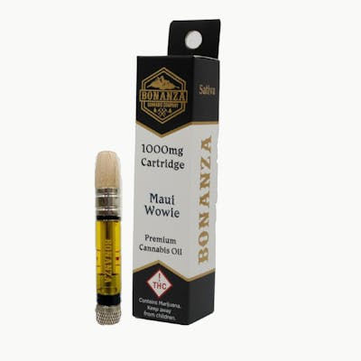 This 1000mg Bonanza sativa-dominant cartridge often produces an energizing mind high. The availability of strains varies. Your budtender will ask your strain preference at pickup.