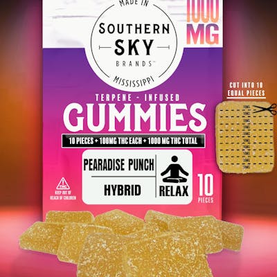 000mg Pearadise Punch Gummies (Terpene-Infused) – HYBRID Escape to flavor paradise with Pearadise Punch Gummies, a terpene-infused hybrid edible crafted for a smooth, balanced experience. Bursting with juicy tropical punch and ripe pear flavors, each gummy delivers a vibrant, fruit-forward taste that’s both refreshing and satisfying. With 1000mg total cannabinoids per package, Pearadise Punch Gummies provide consistent potency and a deliciously smooth finish in every bite. Flavor Profile: Tropical Punch • Pear Terpenes: Girl Scout Cookie–Inspired Type: Hybrid Total Content: 1000mg per package Sweet, smooth, and perfectly balanced—welcome to Pearadise Punch. ????