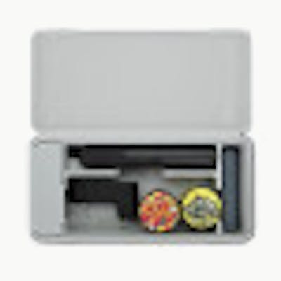 The Travel Case keeps your stash organized. Featuring a ridged hard aluminum exterior with a magnetic lid closure and soft silicone inside to reduce rattling, the Travel Case has room for a Pivot + Hot Knife, up to 3 jars, cotton swabs, a covered section for trash, and anything else you might need.