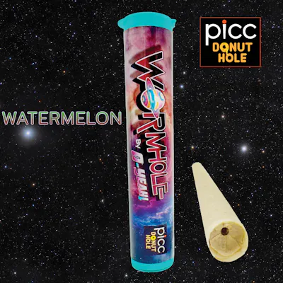 1 Gram | Infused Pre-Roll | Distillate with Botanical Terpenes Full flower enhanced with galactic botanical terpenes injected with a flavored concentrate Wormhole Core. These Wormholes pack a blast of flavor with a potent punch at an affordable price. Strain: Watermelon (Sativa) THC: 30.7% Flavor Profile: A refreshing burst of sweet watermelon is complemented by a sophisticated spicy-peppery kick. Subtle floral notes of lavender and chamomile from Linalool and Bisabolol round out the profile with a clean, aromatic finish. Dominant terpenes: ß-Caryophyllene, a-Humulene, a-Bisabolol, Linalool, Caryophyllene Oxide Effects: This Sativa-dominant blend delivers an uplifting and cerebral experience. The spicy Caryophyllene provides a focused energy, while the floral terpenes offer a calming mental clarity, making it an ideal choice for daytime creativity and social engagement. Key Features: Crown Wick™ – Even perimeter ignition for smooth, reliable lighting PLR Tip™ – Path of Least Resistance Tip channels airflow to eliminate start-up runs Infused Concentrate Core™ – Composed of distillate and flavored with botanical terpenes AIR PAK™ + S.P.A.™ Tech – Eliminates canoeing while maintaining steady, smooth airflow Heat Curve Efficiency – Vaporizes cannabinoids and terpenes at optimal temperature for maximum effectiveness