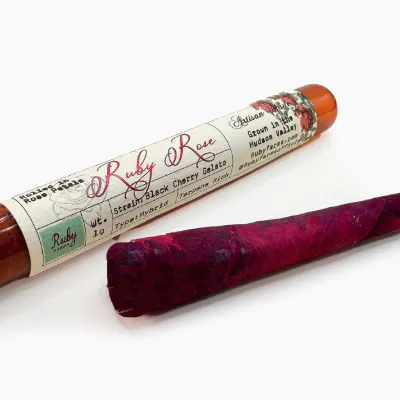 Ruby Rose White Widow Hash Infused Pre Roll 1.5g The Ruby Rose is the pinnacle of our Ruby Js line. This takes the sophistication of The Classic + the hand-crafted feel of The Ruby Doobie and makes it all its own. The Ruby Rose, of course, features our finest cannabis. But what really sets it apart is its namesake: The rose wrap. This is a small-batch option and only a limited quantity is made. Due to the selective and ethical sourcing of rose petals we release a limited amount each year. This artisanally hand-rolled delicacy comes in a premium, sustainable, and durable glass tube topped with a wood-cork for an airtight seal. This keeps The Ruby Doobie fresh and discreet as it blocks smell. The Ruby Rose offers a wide range of cultivar selection that comes from our genetic stable and tailored for taste and effect.