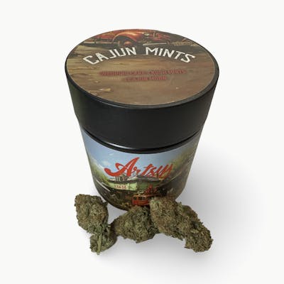 Cajun Mints is an Indica Dominant Hybrid derived from crossing Animal Mints with the Cannabis Cup Winner TriFi Cookies. It offers a distinct minty, spicy, and sweet flavor profile. Users report it provides a relaxing, happy, and euphoric experience.