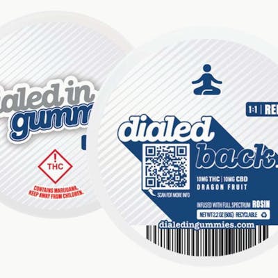 Dialed In... Gummies is pleased to introduce you to Dialed Out... your rosin infused sleep gummy. Each gummy is made with 5mg's of full spectrum indica THC rosin, and completed with 5mg's of pure CBD & CBN to pull you and your customer's straight into that dreamy night's sleep. Harnessing the combined power of THC, CBD, and CBN, along with a fast-acting component, this acai berry gummy ensures a timely drift into sleep, while feeling revitalized in the morning.