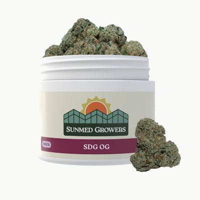 Originally named after the rap artist and cannabis enthusiast, SDG OG is a 70% indica-dominant hybrid strain that is said to contain genetics from Lemon OG and Sour Diesel. The diesel aroma of SDG OG dominates the less prominent lemon notes, making this strain remarkably similar to OG Kush in both aroma and bud structure. The SDG OG effects profile may include sensations that are said to begin with a wave of racing creativity that later ebbs into balanced focus and appetite stimulation.