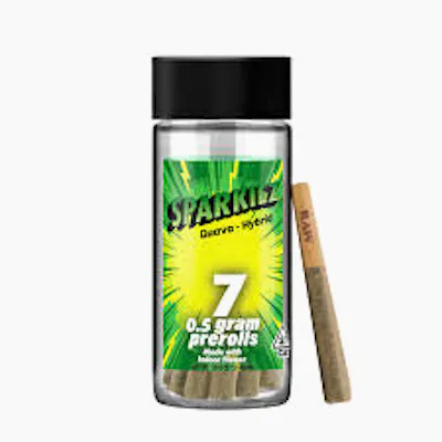 Sparkiez Guava Hybrid 7 half gram pre-rolls. Noted for its fruity and gassy aroma and flavor, this strain is great for anyone with a sweet tooth.