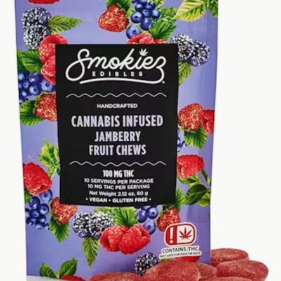 Bursting with an assortment of the best fresh berries, these sweet Gummiez will make you want to spread them on your next PB&J- although we don’t recommend it. (Keep away from bears). These delicious fruit chews are a tasty and satisfying way for you to medicate! They are also Vegan, Gluten Free, Dairy-Free, and contain NO High Fructose Corn Syrup. Each of our mouth watering fruit chews contain 10 mg of THC, and made with our high clarity cannabis distillate for great taste. There are 10 pieces per package with 100 mg active THC per package. Smokiez Fruit Chews come in 5 delicious flavors and have both sweet and sour flavor profiles that you are sure to love!