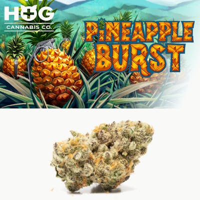 Pineapple Burst is a sativa dominant hybrid strain (70% sativa/30% indica) created through crossing the tasty Pineapple Fruz X Kush Mints strains. Named for its explosive flavor and high, Pineapple Burst is the perfect bright choice to amp you up on any lazy or lethargic day when you need a little extra help to get going. The taste of Pineapple Burst is one for the ages, with a blend of sweet fruity pineapples, zesty tropical citrus and a punch of heavy dank. The aroma is very similar, with a bright pineapple overtone accented by sharp mint and super heavy, pungent dank. The Pineapple Burst high will hit you as soon as you exhale, exploding into your mind with a bright sense of happiness that is accompanied by a rush of energy. You'll feel motivated and stimulated with a vibrant sociability that gets you ready to hop into any conversation happening around you. This energy will spread throughout your entire body with a tingly feeling that has you on your feet in no time at all