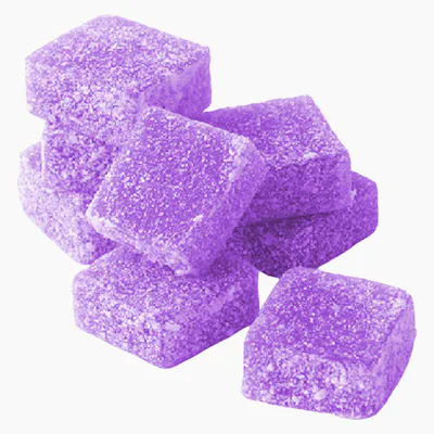 Soft chews with 1 mg of THC per piece. Hints of blueberry and sour citrus resulting in the pomegranate blueberry açai lemonade flavour. High quality soft chews offered at affordable pricing. Natural ingredients, made without animal products or gluten and hybrid terpene enhanced.
