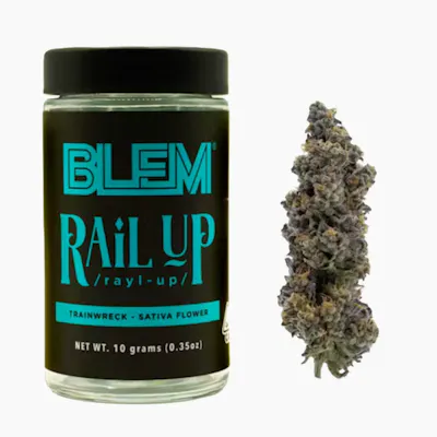 RAIL UP \rayl-up\ - TRAINWRECK SATIVA – slang for "get excited" The train is off the rails! This classic, potent sativa traces its roots all the way back to the late 70s and is well-known for its intense flavor and smell that lingers on the senses long after smoking.