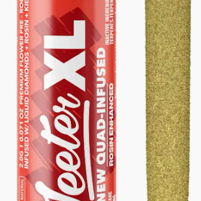 Strawberry Sour Diesel (SSD) - SativaStrawberry Sour Diesel crosses two legacy strains, Sour Diesel and Strawberry Cough, to create a fruity sativa with a serious gas kick. Expect sweet, candied strawberry on the inhale with hints of floral, followed by a sharp exhale of citrusy pine and classic diesel. Bold, flavorful, and perfect for on the go, this one’s got range.Effects: Focused, EnergeticJeeter’s Quad Infused Prerolls combine four layers working in sync for a maxed out infused experience. THCA diamonds add potency, rosin brings smooth, full spectrum depth, expertly crafted terpene profiles help shape the entourage effect while enhancing aroma, and a kief finish adds strength with a hand crafted touch. The result is a harder hitting experience with richer flavor that lasts longer.* Infused w/ THCA diamonds and rosin, dusted in kief* 2g XL Quad-Infused Joint w/ glass tip