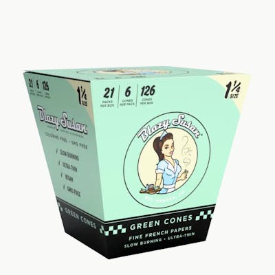 The Blazy Susan Green 1 1/4 Fine French Paper Pre-Rolled Cones offer a perfect balance of quality and purpose. Crafted from premium fine French paper, these cones deliver a slow, even burn that enhances the natural flavor of your herbs. Their signature green tone reflects Blazy Susan’s ongoing mission to protect Planet Earth—ideal for mindful smokers who value sustainability and performance. Key Features: Made from fine French paper for a clean, consistent burn 1 1/4 size cones, pre-rolled and ready to fill