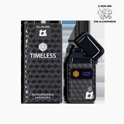 Now featuring Liquid Diamonds in select states 70% Indica, 30% Sativa SWEET BERRIES AND CANDY W/ SOUR CITRUS NOTES Our T-Series All-in-One is the latest addition to our product lineup, offering a new way to experience your favorite Timeless strains. The T-Series is a next generation, T1 is 1 gram and T2 is 2 gram all-in-one vape system built for customization, performance, and discretion. It’s equipped with a digital screen, multiple heat settings, and a flip top cap to keep it clean and protected.