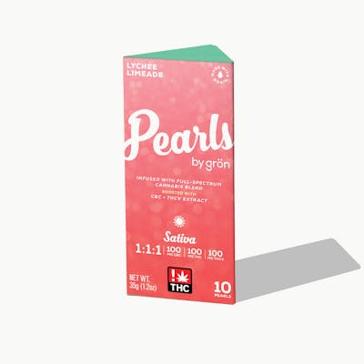 1:1:1 LYCHEE LIMEADE PEARLS THC/THCV/CBC - SATIVA 100MG THC, 100MG THCV & 100MG OF CBC 10MG THC, 10MG THCV & 10MG PER PIECE Bright, juicy, and a little unexpected, our Lychee Limeade Pearls deliver an exotic twist with notes of peach, pineapple, and delicate rose. Infused with THC, CBC, and THCV in a balanced 1:1:1 ratio, these sativa Pearls are your go-to for staying upbeat, dialed in, and ready for whatever the day throws your way.