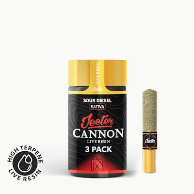 Get to know the latest addition to the Jeeter family: introducing the Cannon Live Resin 3 Pack. Each of these small but mighty Cannons have 0.5G premium indoor flower infused with live resin, totaling 1.5G per jar.