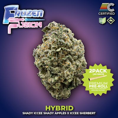 ABOUT: Nug-Run, Premium Pre-rolls; made from CERTIFIED grown genetics. We meticulously grind strain-specific nugs in-house and pack each unit by hand. — ~19.2% THC PRIMARY TERPENE: Linalool | Limonene | Caryophyllene SECONDARY TERPENES: b-Pinene | Terpineol (based on an average of test results; may vary batch-to-batch) — DESCRIPTION: Frozen Fusion (Shady Iccee Apples × Iccee Sherbert) bred by Tiki Madman is a vibrant and flavor-packed cultivar that lives up to its name. Bursting with fruit-forward aromatics, the dominant Limonene delivers zesty citrus and sweet melon notes, while a medium dose of Linalool softens the profile with a light floral touch. Caryophyllene introduces a gentle, peppery kick, complemented by the piney sharpness of both Alpha- and Beta-Pinene. Fenchol and Terpineol bring added depth with clean, herbaceous qualities, and Myrcene weaves in subtle earthiness beneath the bright, candy-like surface. This strain is a dynamic fusion of sweet and spice—uplifting, flavorful, and undeniably fresh. — LINEAGE: Shady Iccee Shady Apples x Iccee Sherbert CATEGORY: Hybrid BREEDER: Tiki Madman AROMA: Fruity and sweet with juicy notes of sour apple, watermelon, and strawberry, finished by a hint of peppery spice. — OUR GENETICS: Choice genetics are hand-selected for unique cannabinoid/terpene profiles - as well as benefited conditions – to provide Ohio patients with a curated selection of quality medical cultivars. — WHO WE ARE: We are family-owned, operated, and based out of Dayton, Ohio. Our facility has hosted family businesses for three generations. From auto parts to sushi and now medical cannabis. We pride ourselves on our passion for high quality, science, and design to create an exceptional medical cannabis experience.