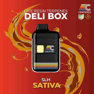 From our LOUD Series, the Deli Box [Variable Voltage] Disposable made with Live Resin Terpenes (LRT)! — 2 button clicks: Pre-Heat feature 3 button clicks: Variable Voltage (Low: 2.6V; High: 2.8V) 5 button clicks: turn on/off — TYPE: Super Lemon Haze AROMA: Bright lemon zest from Limonene; Tropical fruit and pineapple sweetness from Ocimene and Farnesene; Earthy gas and spice from Caryophyllene and Myrcene; Forest pine and herbal wood from Alpha-Pinene, Terpinolene, and Humulene; Soft floral and citrus sugar finish from Linalool, Beta-Pinene, Carene, and Fenchol. DESCRIPTION: Super Lemon Haze lives up to its name with a vivid burst of sweet lemon glaze layered over deep, pungent gas and a misty haze of old-growth cedar. High Limonene leads with a citrus-forward brightness, while Ocimene and Farnesene lift the nose with juicy tropical fruit, pineapple, and candied sweetness. Caryophyllene, Myrcene, and Humulene ground the profile in spicy, earthy warmth, as Alpha- and Beta-Pinene, Terpinolene, and Fenchol evoke a pine-filled forest after rain. Hints of Linalool and Carene bring floral undertones to round out this complex, layered sativa. EFFECTS: A vibrant lemon-fueled sativa with sweet tropical overtones and earthy depth—energizing and uplifting, with just enough grounding to stay clear-headed. — ~5.58 - 6.86% TOTAL TERPENES PRIMARY TERPENES: Limonene | Caryophyllene | Ocimene SECONDARY TERPENES: Terpinolene | Myrcene | a-Pinene | Humulene | b-Pinene | Linalool | Carene | Fenchol (based on an average of test results; may vary batch-to-batch) — ABOUT: These smell loud - they are not discreet. These all-in-one vape pens are designed to create a cannabis-centric experience, with the associated taste and smells. We carefully source high-quality and flavorful Live Resin terpenes to provide classic strains in a convenient vape format. — DELI BOX HARDWARE: Packaged in a Cilicon Deli Box Disposable & Rechargeable All-in-One with Variable Voltage. • No Heavy Metals • Equipped with the next-gen ceramic cool-heating technology – DeliFlow™ • Innovative postless design makes it completely metal-free and cotton-free while providing a clear visual into oil level • Consistent vapor production without leaking or clogging • Flavorful & Smooth Hits **USB-C charging**