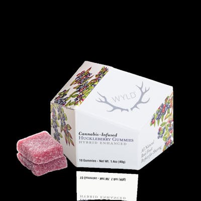 HYBRID Wyld Huckleberry Hybrid gummies are made with real fruit and enhanced with a balanced hybrid terpene profile that assists in creating a sense of cheerfulness and overall well-being. Ideal for your day-to-day adventures! 100mg THC per pkg 10mg THC per gummy