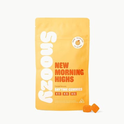 SATIVA Waking up is hard sometimes. Find inspiration with Snoozy New Morning Highs Gummies. New Morning Highs help you greet the day with a calm mind, putting a pep in your step that will last well into your day. A perfect compliment to Snoozy Sleep with Benefits. Each gummy contains cannabinoids such as THC, CBD and CBG. Formulated with organic & all-natural ingredients to help you seize the day.