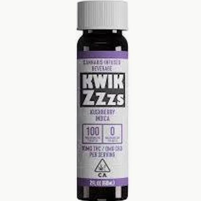 KWIK ZZZs Indica BY MANZANITA NATURALS Specially brewed to ease insomnia and otherwise sleepless nights, Kwik Zzzs contains traditional healing herbs such as lavender, chamomile, and Valerian root. These are enhanced with a premium Kushberry indica extract and a delicious elderberry flavor, making Kwik Zzzs the most satisfying way to achieve a good night’s rest.- 2 ounce beverage. - 100mg THC. - Flavor: Elderberry. - Low calorie. - Strain-specific with Kushberry. - Active ingredients include lavender, chamomile, and Valerian root. - Easy dosing - 5mg per capful. - Water-soluble. - In-house nanoemulsion process. - Fast-acting. Great for insomnia & pain relief. Contains: CO2 cannabis oil infused in water with honey, lemon juice, chamomile, ginger root, lavender, valerian root & orange peel extracts, and citric acid