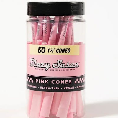 Premium Pink Pre Rolled Cones crafted from ultra-thin, slow-burning French paper for a smooth session. Available in multiple sizes with convenient jar packaging, stylish, vegan, and eco-friendly.