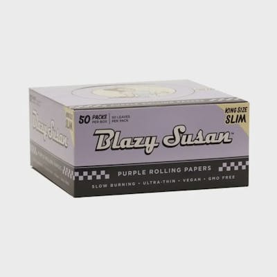 Do you consider yourself a big roller? Are you constantly running low on rolling papers? This might be exactly what you’ve been needing – a Display Box of Blazy Susan’s King Size Slim Purple Rolling Papers. This full box of papers is an essential item for every big-time roller.