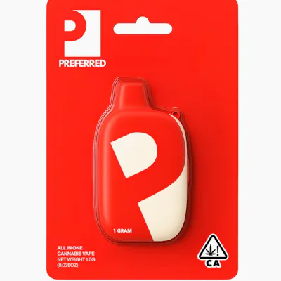 PREFERRED brings you RED RUNTZ 1G ALL IN ONE, a convenient all-in-one cartridge designed for effortless enjoyment. This sleek 1-gram vape delivers the sweet, fruity essence of the legendary Red Runtz strain, known for its candy-like flavor profile with notes of berry, tropical fruit, and a subtle creamy finish. The all-in-one design means no charging or button-pressing required—just inhale and experience smooth, flavorful vapor from first puff to last. Perfect for on-the-go sessions, this cartridge offers a discreet and portable solution for cannabis enthusiasts seeking quality and convenience. Whether you're unwinding after a long day or looking to elevate your everyday moments, RED RUNTZ delivers a satisfying vape experience with rich flavor and reliable performance. PREFERRED's commitment to quality ensures consistent potency and purity in every draw. Enjoy the fusion of sweet berry and tropical notes in this hassle-free, ready-to-use cartridge.