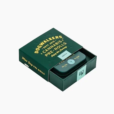 The dog pack just got bigger with Dogwalkers 12 pack pre-rolls. Our “SIT” Mini Dog 12 pack pre-rolls offer a total of 4.2g of indica-leaning flower. Conveniently packaged in an on-the-go tin, each .35g miniature pre-roll (12 total) is always crafted with strain-specific premium flower; never shake, stems or seeds. Dogwalkers donates a portion of proceeds from every product sold to deserving animal shelters across the country.
