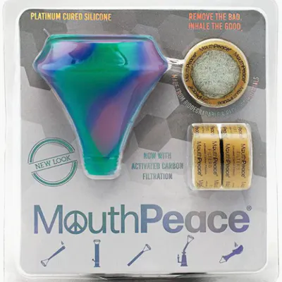 Did you know hemp smoke can deposit tar deeper into the lungs than cigarettes because of how it’s inhaled? After 16 months of R&D, we created the MouthPeace and MouthPeace Filters. Made from biodegradable and recycled materials, the triple-layer activated carbon filters sanitize smoke/vapor and enhance flavors by removing resins, contaminants, and tar; all without blocking your intake or reducing airflow. Replace Filter as needed for optimal performance. See and feel the difference. Kit includes MouthPeace, 3 Filters, and lanyard.