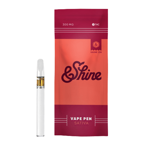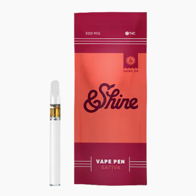 &Shine Sativa 300mg Vape Pens offer a great combination of value and quality with high-potency distillate oil paired with 100% all-natural botanically derived terpene blends.