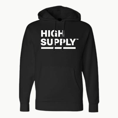 Premium Heavyweight High Supply Hoodie with full front imprint.