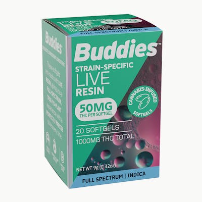 Experience Buddies’ high-quality Live Resin formula with maximum convenience with our pharmaceutical grade softgels. Available in bottle and trial sizes, each softgel captures a full spectrum of strain-specific cannabinoids and terpenes, providing a synergistic effect ideal to a well-rounded cannabis experience. Conceived to pair precise dosing with a discreet form, our softgels are perfect for any situation and ideal for those who prefer a method that’s familiar. Ingredients: Gelatin, Glycerine, MCT Oil, Cannabis Extract