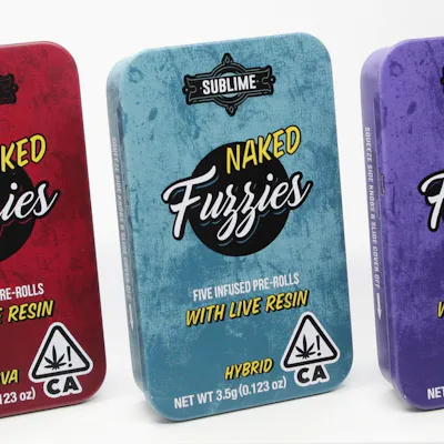 Sublime’s infused Fuzzies are getting even sexier. We stripped them down to just the flower and added live resin sauce for an indulgent experience. They’ll still get you feeling fuzzy. Our premium Naked Fuzzies pre-rolls come in a five pack in three different strains - Indica, Sativa, Hybrid - for added pleasure and convenience. Feeling saucy? Get Naked Fuzzies.