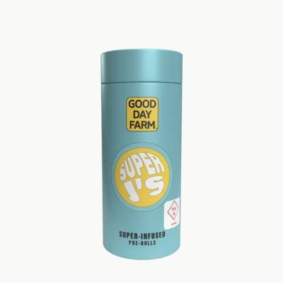 Good Day Farm Super J's packs are filled with five 0.5g pre-rolls that are super-infused for superior power and superior flavor. We start with Good Day Farm premium, full flower and super-infuse it with an explosion of blueberry terpenes and potent cannabis oil. We take that THC-loaded flower, roll it with organic papers, and coat it with a supersuit of premium kief. With five infused pre-rolls to a pack, you can fly a little higher (and keep going back for more)! Strain-Specific | Super-Infused | Ready to Spark Super People. Super Cannabis. Super J's. Sour Cheetah is a potent hybrid strain that packs a punch with its electrifying effects and vibrant aroma. The scent is an unmistakable blend of skunky diesel and citrus, with subtle hints of sweetness. Sour Cheetah is known to deliver a balanced high that begins with an invigorating cerebral buzz, before smoothly transitioning into a relaxing, full-body calm. With a terpene profile dominated by limonene, caryophyllene, and myrcene, expect an uplifting yet soothing experience, perfect for both daytime and evening use. Whether you're looking to elevate your mood, or just unwind, Sour Cheetah has the agility and potency to meet your needs. LINEAGE: Unknown CLASSIFICATION: Hybrid TERPENES: Limonene, Beta-Caryophyllene, Myrcene FEEL GOOD STATES: Relaxation, Unwind AROMA: Skunk, Diesel, Citrus FLAVOR: Earthy, Gassy, Citrusty