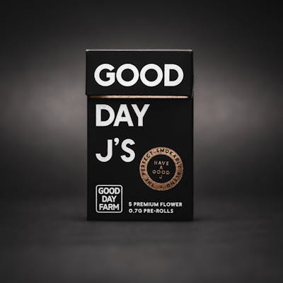 Good Day Farm Super J's packs are filled with five 0.5g pre-rolls that are super-infused for superior power and superior flavor. We start with Good Day Farm premium, full flower and super-infuse it with an explosion of delicious shortbread dessert terpenes and potent cannabis oil. We take that THC-loaded flower, roll it with organic papers, and coat it with a supersuit of premium kief. With five infused pre-rolls to a pack, you can fly a little higher (and keep going back for more)! Strain-Specific | Super-Infused | Ready to Spark Super People. Super Cannabis. Super J's. Good Day Farm's Banana Cream Cake x Jealousy is a delectable strain with powerhouse parents. Banana Cream Cake serves up a sweet, decadent creaminess, while Jealousy, Leafly's 2022 ""Strain of the Year,"" brings an earthy, funk on the exhale. Known to promote a sense of relaxed euphoria, this strain melts the body and awakens the mind. Jealousy looks good on you… throw in Banana Cream Cake, and you’ve never looked better. LINEAGE: Banana Cream Cake x Jealousy CLASSIFICATION: Indica TERPENES: Limonene, Beta Caryophyllene, Linalool, Myrcene, Humulene, Guaiol FEEL GOOD STATES: Unwind, Soothe AROMA: Sweet, Creamy, Earthy FLAVOR: Sweet, Candy, Fruit, Earthy FEELS LIKE: Euphoric, Happy