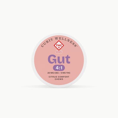 Discover Gut 4:1 Citrus Ginger Chews, part of Curio Wellness' Best Self Collection. Crafted for easy enjoyment, these chews blend bright citrus with a hint of ginger for a refreshing, balanced flavor experience. Featuring a 4:1 ratio of CBD to THC (20mg CBD : 5mg THC), Gut Citrus Ginger Chews are designed with balance and consistency in mind. Each chew is made with high-quality, natural ingredients and cconsumer tested to ensure consistent flavor and quality, offering a plant-based indulgence that fits naturally into your daily routine.