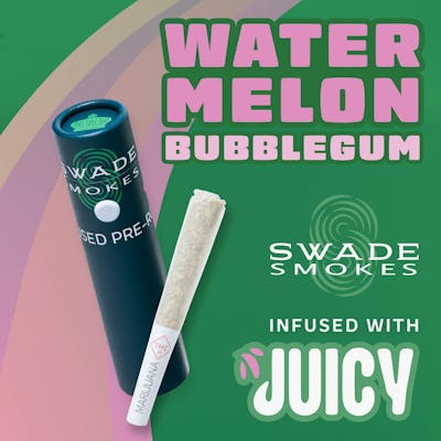 Same signature Swade Smokes, you know, now paired with bold Juicy flavors for a smoother, more consistent hit. Each pack includes five 0.5g distillate-infused pre-rolls, designed for impact. Watermelon Bubblegum – Bubblegum dreams with a watermelon twist. One puff and you’re poolside.