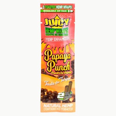 JUICY TERP ENHANCED HEMP WRAPS – PAPAYA PUNCH We took our Hemp Wraps and added in Terp Infusion! Terpenes turn on receptors in your brain so you have an enhanced experience. No Tobacco Made from Natural Toasted Hemp Sealed for Guaranteed Freshness 2 Wraps/Pack 25 Packs/Box