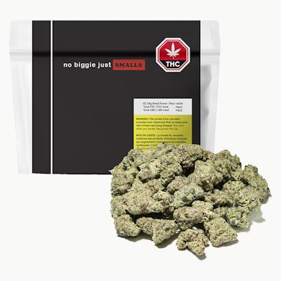 Explore the finest cannabis in a compact package with this product. This collection of small buds is crafted from boutique genetics and grown with care, offering you a premium experience without the premium price. Each batch features rotating hybrid strains, ensuring a fresh and dynamic flavour and effect profile every time you pick up a pack. Hand-trimmed and sustainably cultivated, these smalls are bursting with potent cannabinoids and rich terpenes, delivering big flavour in a small package. It's no biggie — just smalls, made perfect.