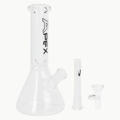 The Apex glass beaker-style water pipe stands 23 cm tall and features a diffused downstem that helps cool vapour for smoother inhalation. Its high-quality, hand-blown borosilicate glass fabrication makes it resistant to shock; and it comes with an ice catcher for smoothness and a pull-out glass bowl for ease of use. All sales are final.
