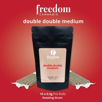 Canadian Fire is Freedom Cannabis' newest brand is made for the Canadian in all of us! Nothing says Canadian like sitting on the deck or around the fire with Canadian Fire. Follow up on the Double Double large, we are launching the Double Double Medium. This Double Double Medium is a 10 x 0.5-gram Pre-Rolls (5 of one strain and 5 of a second strain) packaged in a cardboard box and put into a child-proof mylar bag. Enjoy a Double Double Medium this summer while spending time with friends.