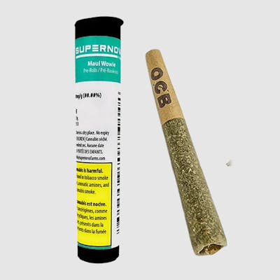Supernova Farms, Maui Wowie (Myrcene & Linalool & Limonene), 3x0.5g Preroll. 45 days cured, Whole Flower, (Chem 4 x Sunshine Daydream) x Bitch Slap (Kosher Kush x (Zkittlez x OG Eddy Lepp)). Expect an invigorating cerebral high complemented by a heavy-bodied feeling, typical of Chemdawg strains. This journey culminates in a powerful sedative effect, keeping users firmly planted on the couch.
