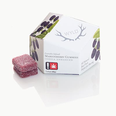 Made with real fruit, these indica enhanced Marionberry Gummies are a deliciously excellent way to end any day. Ingredients: Tapioca Syrup, Sugar, Water, Marionberry Juice Concentrate, Gelatin, Natural Flavoring, Coconut Oil, Citric Acid, Cannabis Extract, Sunflower Lecithin. * Contains Coconut. Based in Portland, Wyld is Oregon's leading cannabis edible brand. This ambitions group love to live life to its fullest; ready to embrace challenges, test boundaries, and push their limits. Their real-fruit infused, soft and incredibly delicious gummies are a true taste of the Pacific Northwest.