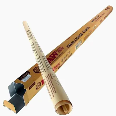 These RAW pre-rolled challenge cones are made from the same quality RAW unbleached natural rolling paper that you've come to love. The cone shape lets more tobacco burn at the beginning, and then less and less tobacco is burned with each puff. As your tobacco gets stronger and stronger, you are burning less of it. This means your first puff will taste the same as the last puff. These RAW cigarette cones save you time because they come pre-rolled, so you get the cone properties without taking time to roll it. Less processed and vegan, these RAW cigarette cones are the perfect way to enjoy your smokes. 24 inches in length Includes one RAW Challenge Cone Includes a special packing tool an inner shell that can be used as a scoop and funnel