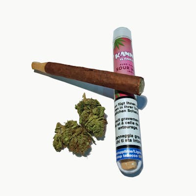 Kannabo Blunts Sour Widow mit einem echtem Tabakblatt aromatiesiert mit Wonderberry Geschmack und einem schon verbauten Holzfilter.Blunt à 0.9g.Nicht berauschendAnbauart: Indoor